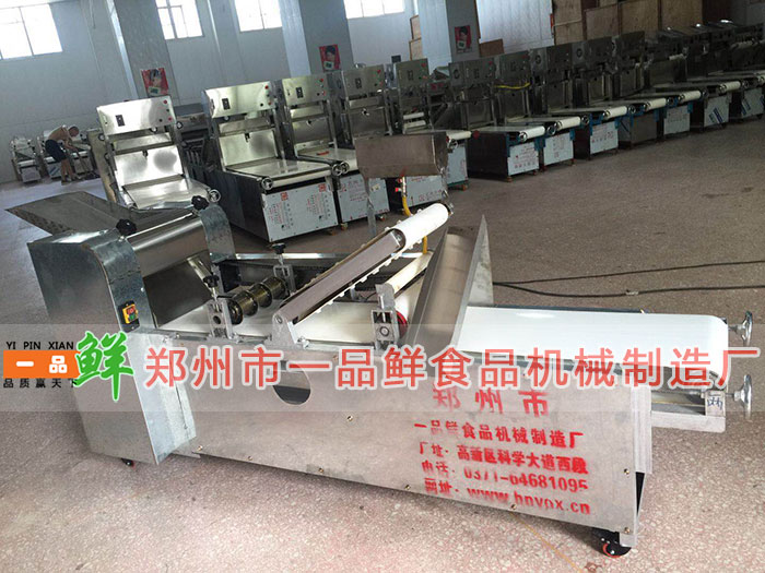 設備功能:單輥單刀,適應大中型飯店、燴面館、食堂、賓館的自用,可生產橢圓形燴面坯,燴面坯重量可自行調節,輸送帶周長3.6米傳送一次成型,定量生產。